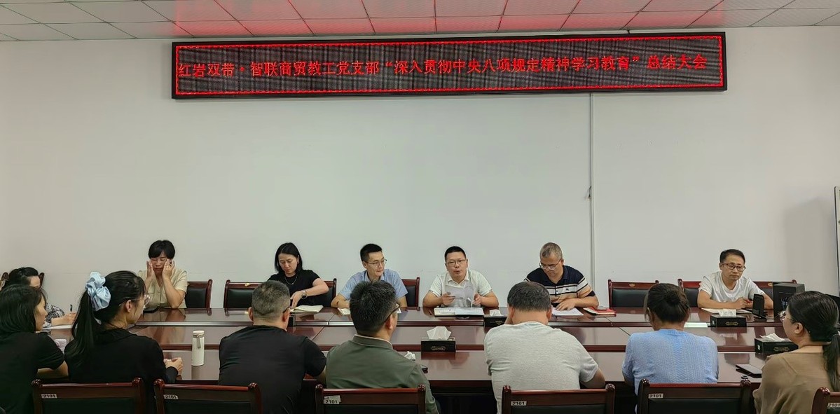 2025年9月19日,我院红岩双带·智联商贸教工党支部召开深入贯彻中央八项规定精神学习教育总结会,联系支部的院领导谭明交书记出席会议并“点赞”该支部学习教育成效。