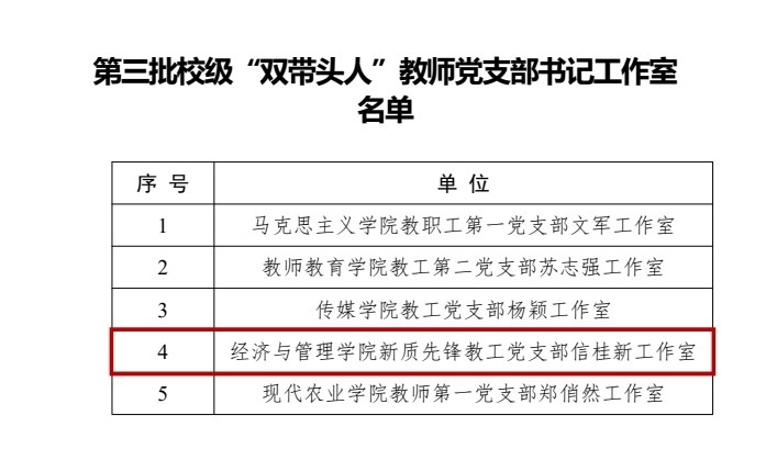 新质先锋教工党支部信桂新工作室立足新文科建设背景,创新工作室式党建模式,工作室以“领航者”科研攀高计划为抓手,组建党员科研先锋队,建立国家级项目培育库,在服务乡村振兴、推动数字经济发展等领域取得系列标志性成果,形成“党建红引领事业兴”鲜明特色,构建起“支部搭台、企业联动、师生共进”育人共同体,实现党建、科研与社会服务同频共振。