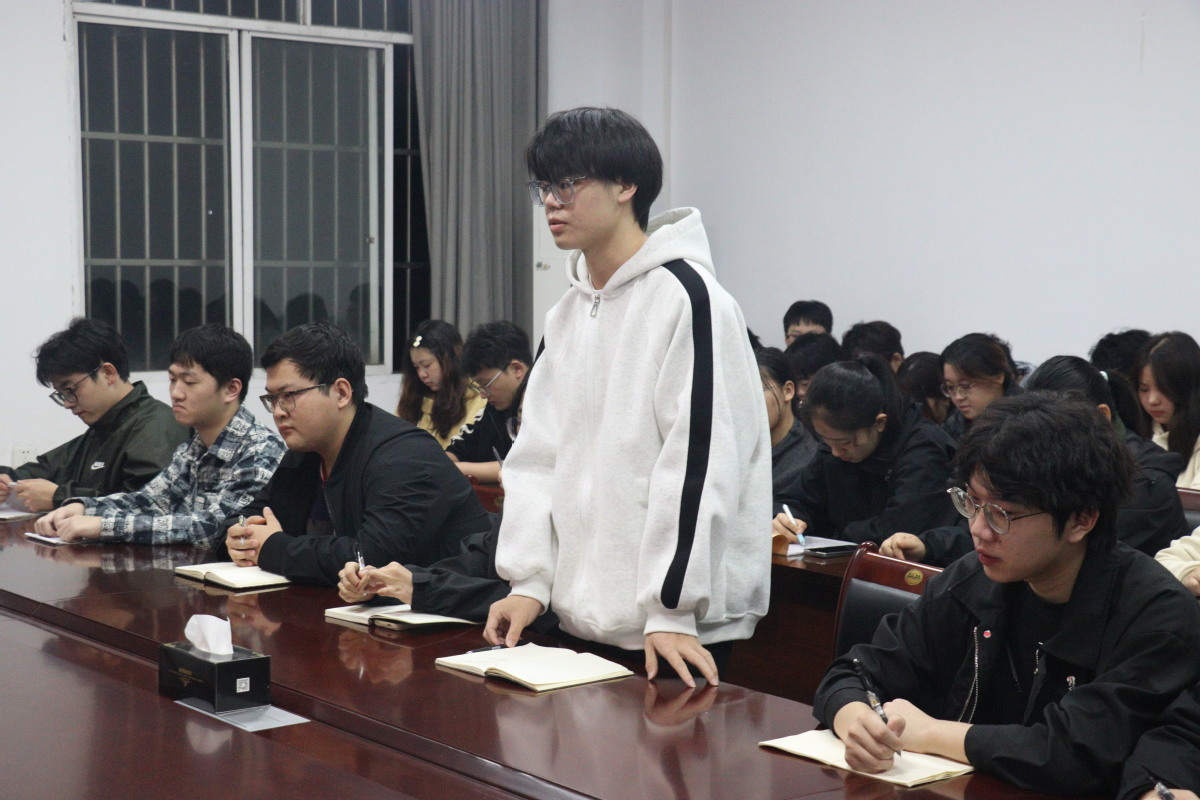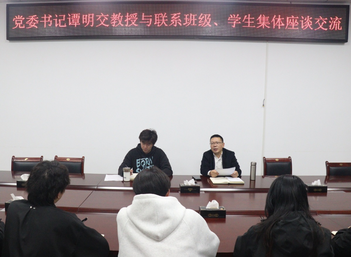 10月29日,经济与管理学院党委书记谭明交教授召集联系班级、学生开展集体座谈,2024级辅导员孙铭泽、谭书记联系班级全体学生及联系学生50余人参加。