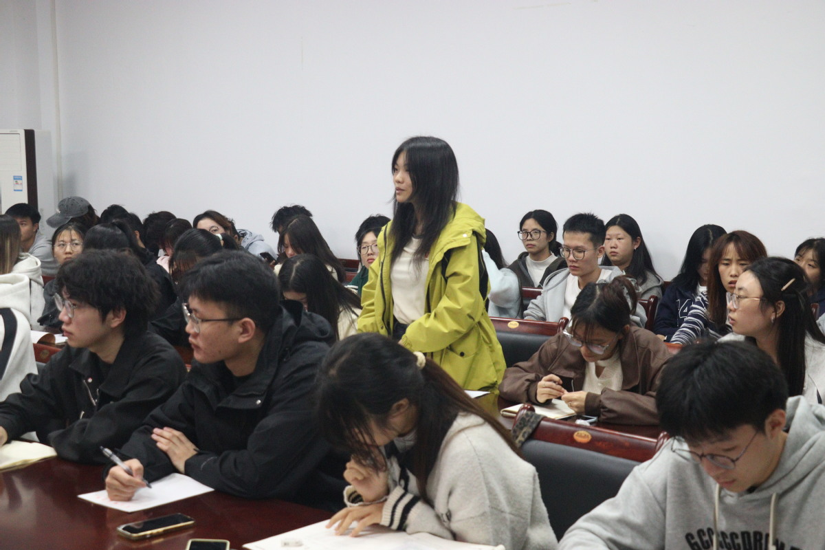 学生们围绕大学学习生活、学科竞赛、职业规划、时间分配等实际问题提问,谭书记结合案例详尽解答,师生互动氛围热烈,欢笑声不断。谭明交强调:一是思想政治引导:筑牢理想信念,胸怀大志。要胸怀“经世济民”之志,坚定理想信念;发扬“长师精神”,勇担时代重任。二是学业发展规划:锤炼过硬本领,追求卓越。要深化专业认知,践行“敬业自强”;注重实践创新,锤炼“坚韧执着”。三是就业创业指导:树立正确观念,体现价值。要认清形势,“不甘人后”主动作为;交流请教,确保“经管有实效”;四是大学生活适应:注重全面发展,展现风貌。要注重日常生活,共建和谐环境;促进身心健康,恪守“学高身正”。