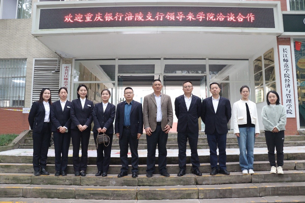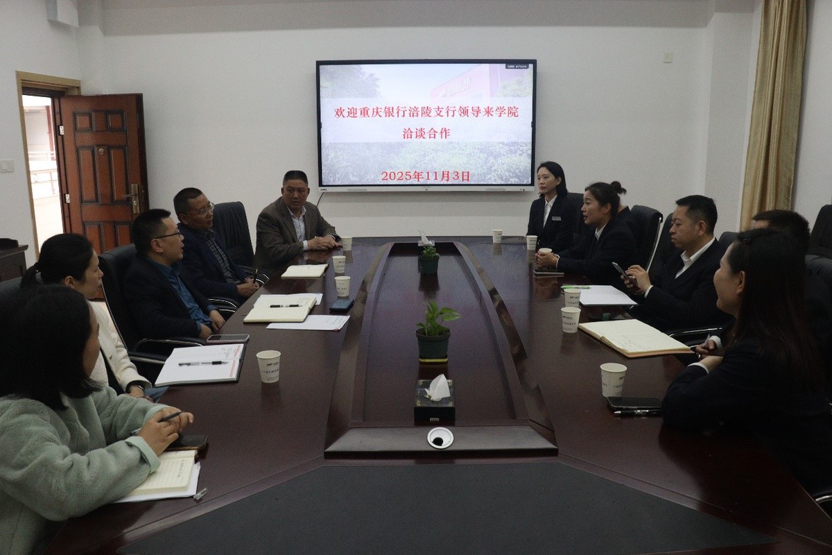11月3日下午,经济与管理学院与重庆银行涪陵支行在明德楼1202会议室开展校企洽谈会。学校教学质量研究与评估中心处长谭永忠,学院党委书记谭明交、副院长罗文宝、党委副书记何悦及团委书记冉雯瑞出席会议,双方围绕学生实习合作、资源对接等方向深入交流。