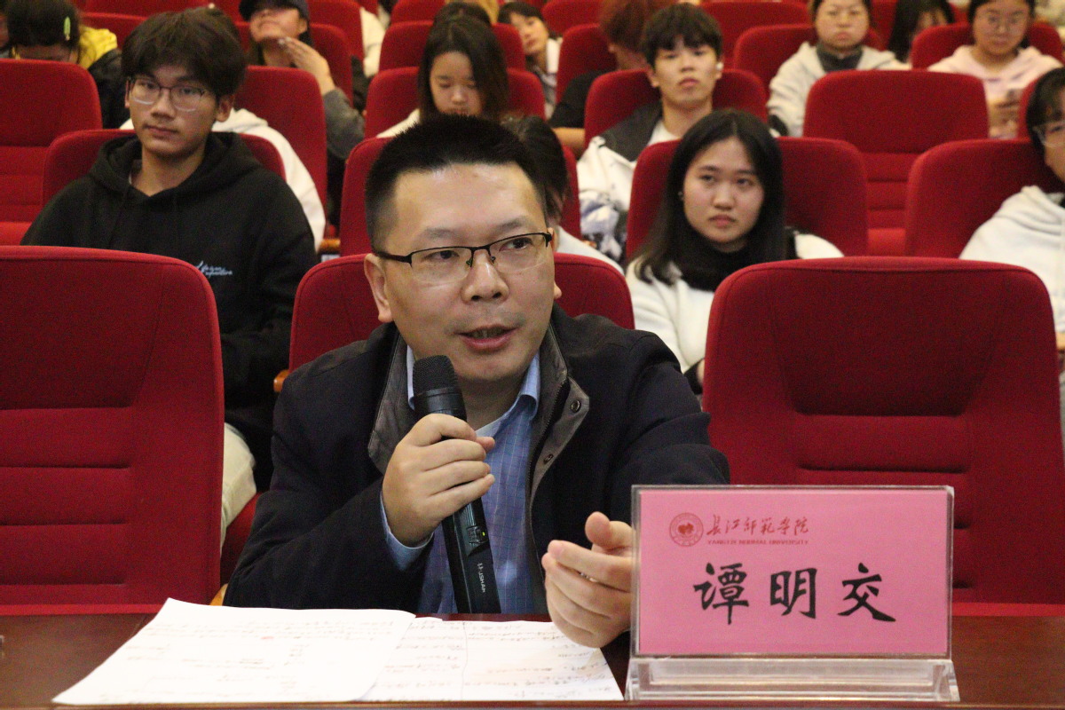 点评环节,武尧老师肯定了辩手流畅的语言表达和扎实的知识储备,分析各支队伍攻辩技巧、团队配合、临场应变及可提升空间。冉雯瑞老师强调辩论赛是发扬“弘毅尚知 求真务实”学风的重要平台。谭明交书记从专业角度指导辩手思考辩论拆题技巧、精准分析各位辩手优势、特点并详尽教导。谭书记指出优良学风是大学根基,严谨的科学道德与创新实践能力至关重要。学院将持续完善各类学生赛事,加强专业指导与系统训练,着力打造有益于锤炼思辨能力、提升综合素质的标杆赛事,践行“为党育人、为国育才”使命。