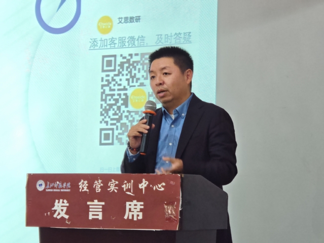 信桂新对艾斯产研数据平台李欣欣一行到来表示热烈欢迎,他表示数据的获取与使用是毕业论文撰写的重要基础,同学们要熟练掌握数据平台的使用技巧。