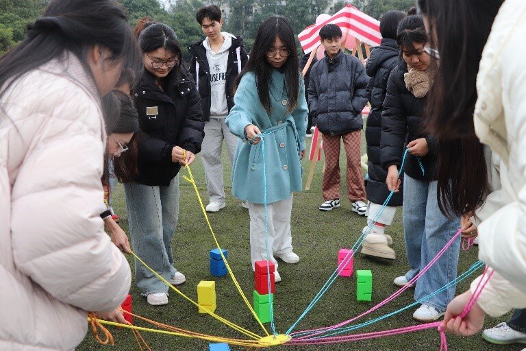 活动由学院团委组织部、心灵发展部联合承办,以沉浸式趣味游戏为载体,设置同心鼓、不倒森林、合力建塔、职业侦探与职业绘等六项团队挑战项目。活动伊始,各班高呼铿锵口号,摆出创意队形,尽显青春朝气与团队凝聚力。竞赛环节,以班级为单位开展竞技,在工作人员的指引下,依照指定路线有序完成各项挑战。同学们齐心协力、突破自我,在欢声笑语中进一步增强团队协作意识与集体归属感。活动根据各班累计积分,评选出一、二、三等奖及优秀奖若干。