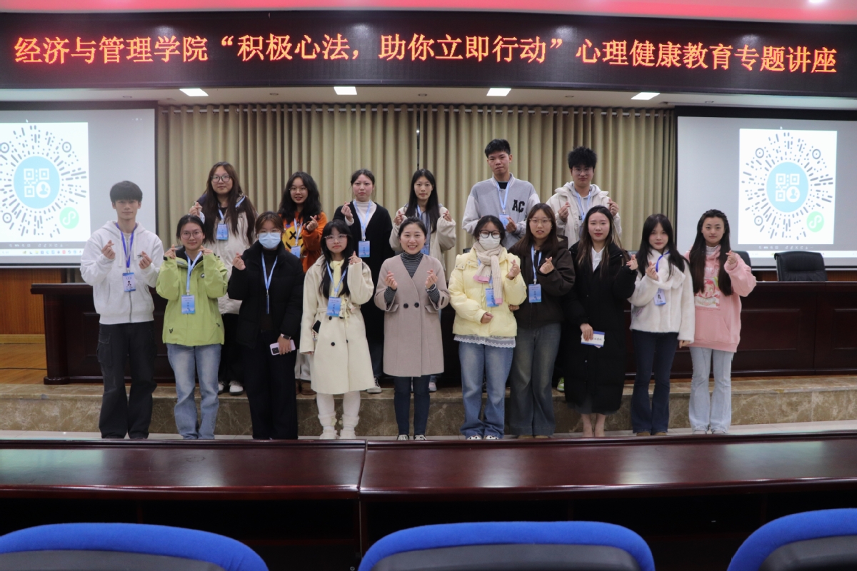 11月27日晚,经济与管理学院在鉴湖学术报告厅开展“积极心法,助你立即行动”心理健康教育专题讲座。讲座特邀国家三级心理咨询师、学校心理健康服务中心专职老师王森雅担任主讲人,150余名学生参加。