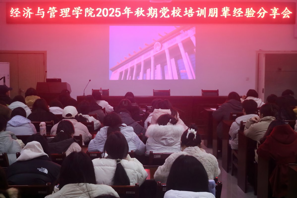 12月16日,院党委在明德楼2115组织开展了经济与管理学院2025年秋季入党积极分子及预备党员培训班经验分享会。本次活动特邀2023级公共事业管理专业专升本2班张娇娇同志到场分享经验心得。