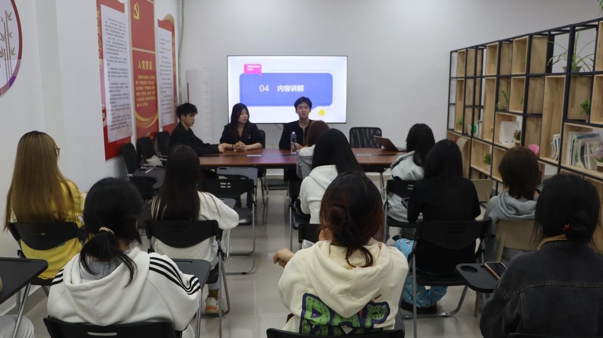 活动以“大雨中雨小雨”破冰游戏拉开序幕,全体同学观看公益筑梦团志愿服务纪实视频,真实案例引发在场同学对社会责任内涵的深度思考。孙铭泽从思想政治教育视角出发,深刻阐释志愿服务对大学生价值观培育的重要意义。黄家传、张珍则结合团队在公益活动实践中的探索与成长经历,分享了用专业所长温暖弱势群体的动人故事,并号召同学们发挥专业特长践行时代使命,在服务社会中彰显青春担当。