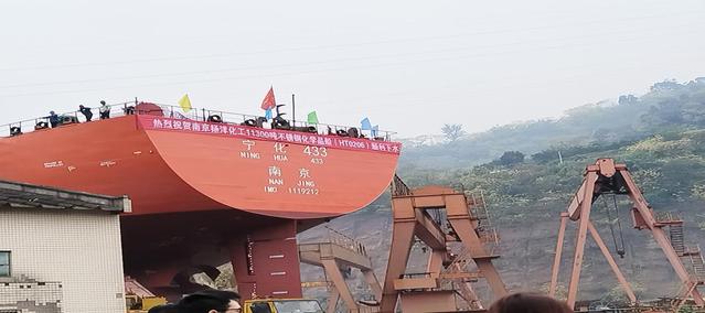 最后,实习队伍前往中国船舶集团重庆川东造船有限公司。同学们先参观上世纪90年代的旧厂区,斑驳的龙门吊、有年代感的车间厂房和完好的生产设备,观摩11300吨不锈钢化学品船的下水仪式,巨轮平稳滑向江面,让同学们了解船舶建造关键工序,感受现代造船技术的气势与魅力。