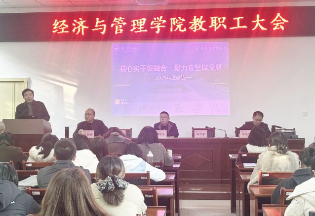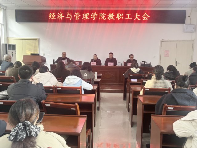 2026年1月9日,学院召开2025年秋期全体教职工大会。院党委书记谭明交主持会议。院党委副书记、院长郑万军,院领导班子罗文宝、张斌儒、信桂新及全体教职工参会。