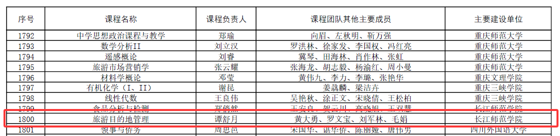 持续强化质量工程顶层设计,以课程建设、教研教改项目为抓手,深化教育教学综合改革。通过精心培育与重点建设,在课程建设、教学创新与成果转化方面取得系列成果,获市级及以上质量工程项目及奖项共13项,其中,一流课程建设实现新突破,《旅游目的地管理》获批国家级一流本科课程。