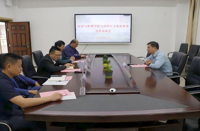 10月16日,涪陵区文化旅游委党委书记、主任夏强伟应邀莅临我院交流指导,开展合作洽谈。党委书记谭明交、院长郑万军及旅游管理系教师代表参会,副院长信桂新主持会议。