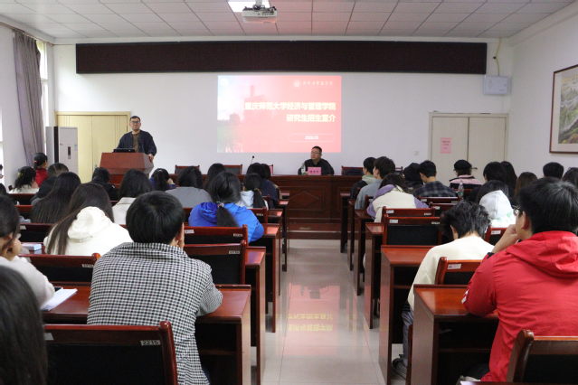 4月1日下午,重庆师范大学经济与管理学院研究生招生宣讲会在我院明德楼2215会议室顺利举办。重庆师范大学经济与管理学院副院长陈宇科、教授王亚飞莅临现场宣讲,学院副书记何悦、副院长信桂新及意向考研学生参会。
